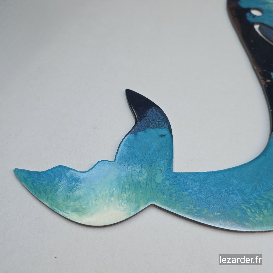 Cette baleine à bosse est un objet de décoration murale. Découpé dans une plaque de composite d’aluminium, d’une épaisseur de 3 mm, vous pourrez l’installer à l’intérieur de votre habitation comme à l’extérieur, protégé du plein soleil direct.