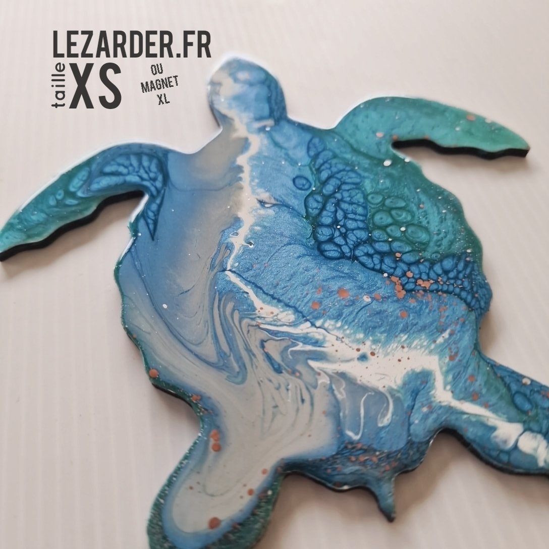 Tortue en composite d’aluminium de 13 cm de largeur et 14 cm de hauteur. Vous pouvez la mettre à l’intérieur ou à l’extérieur de votre habitation. Vous pouvez la transformer en magnet d’une taille honorable et la mettre sur un frigidaire avec l’aimant fourni (à coller avec de la colle glue au dos de l’objet). Vous pouvez trouver un autre usage et il est possible aussi en intérieur d’utiliser de la pâte à fixe pour l’installer sur un mur sans le détériorer. A l’extérieur, cet objet sera du plus bel effet collé sur un mur.